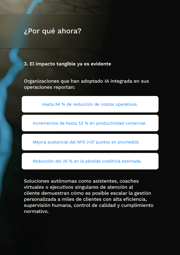 Da el siguiente paso en la transformación de tu institución financiera con IA.